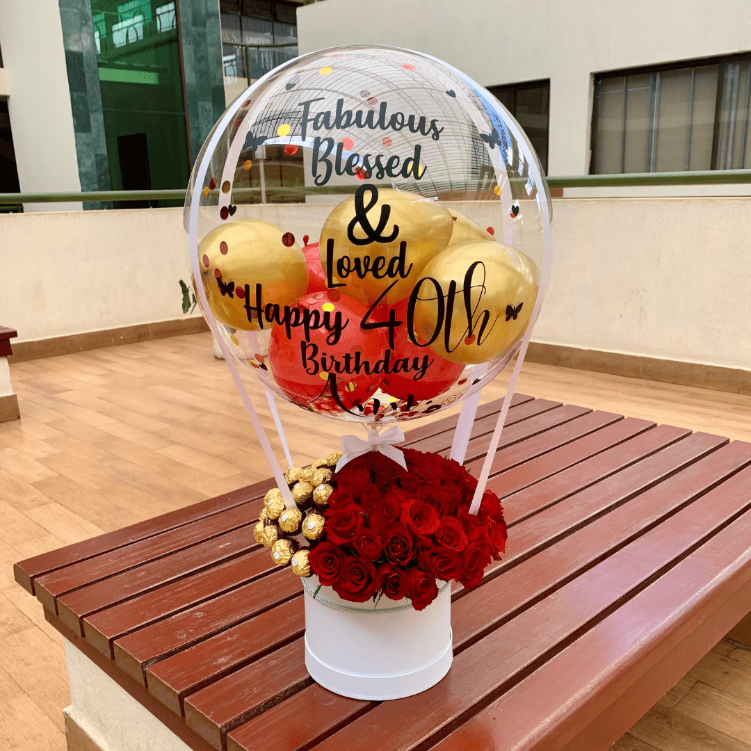 Elevate your gifting with our Ferrero Flower Bubble, a stunning fusion of fresh blooms and decadent Ferrero Rocher chocolates. Whether you prefer a balanced mix of flowers and chocolates or an entirely golden display of Ferrero, this package offers the perfect combination of sophistication and sweetness.