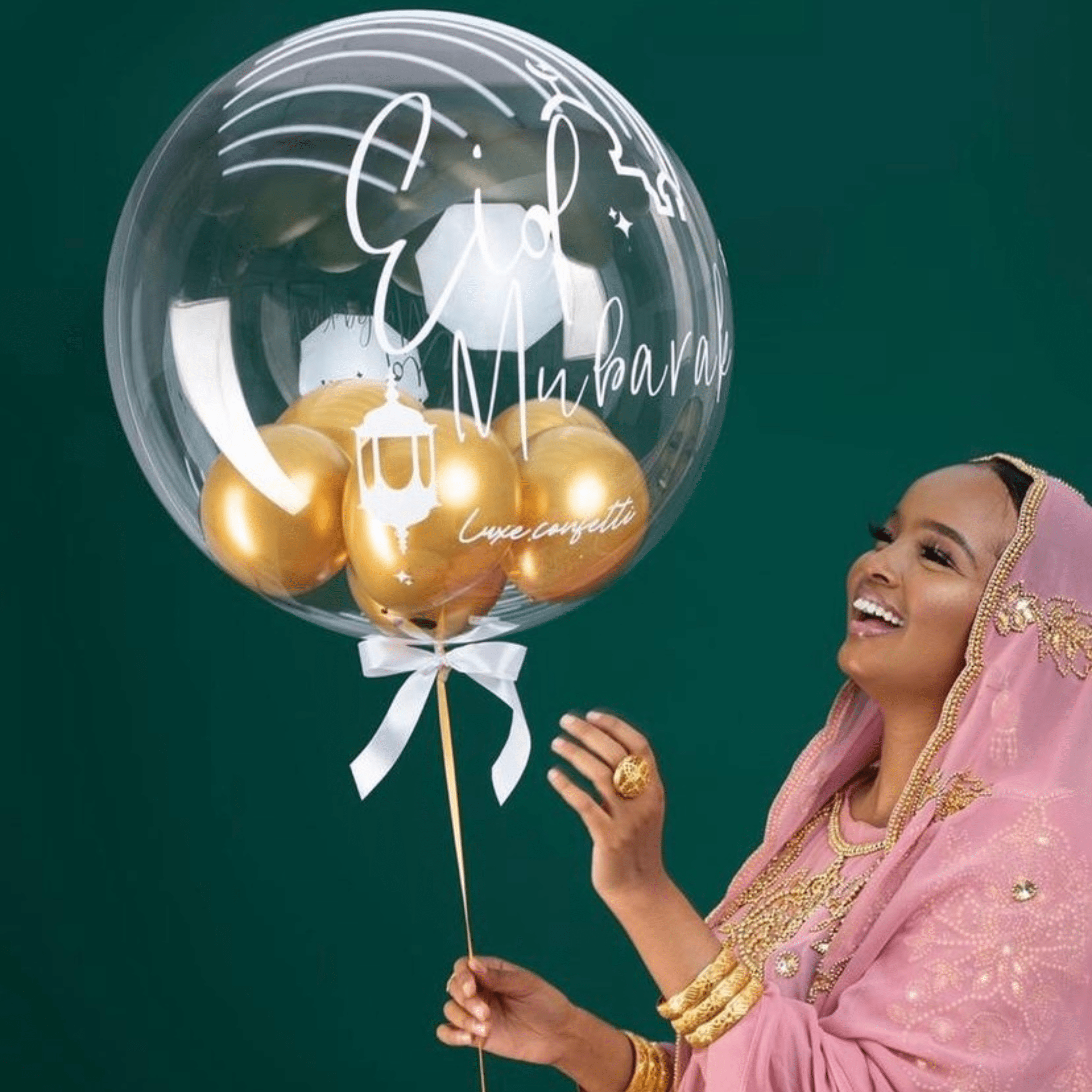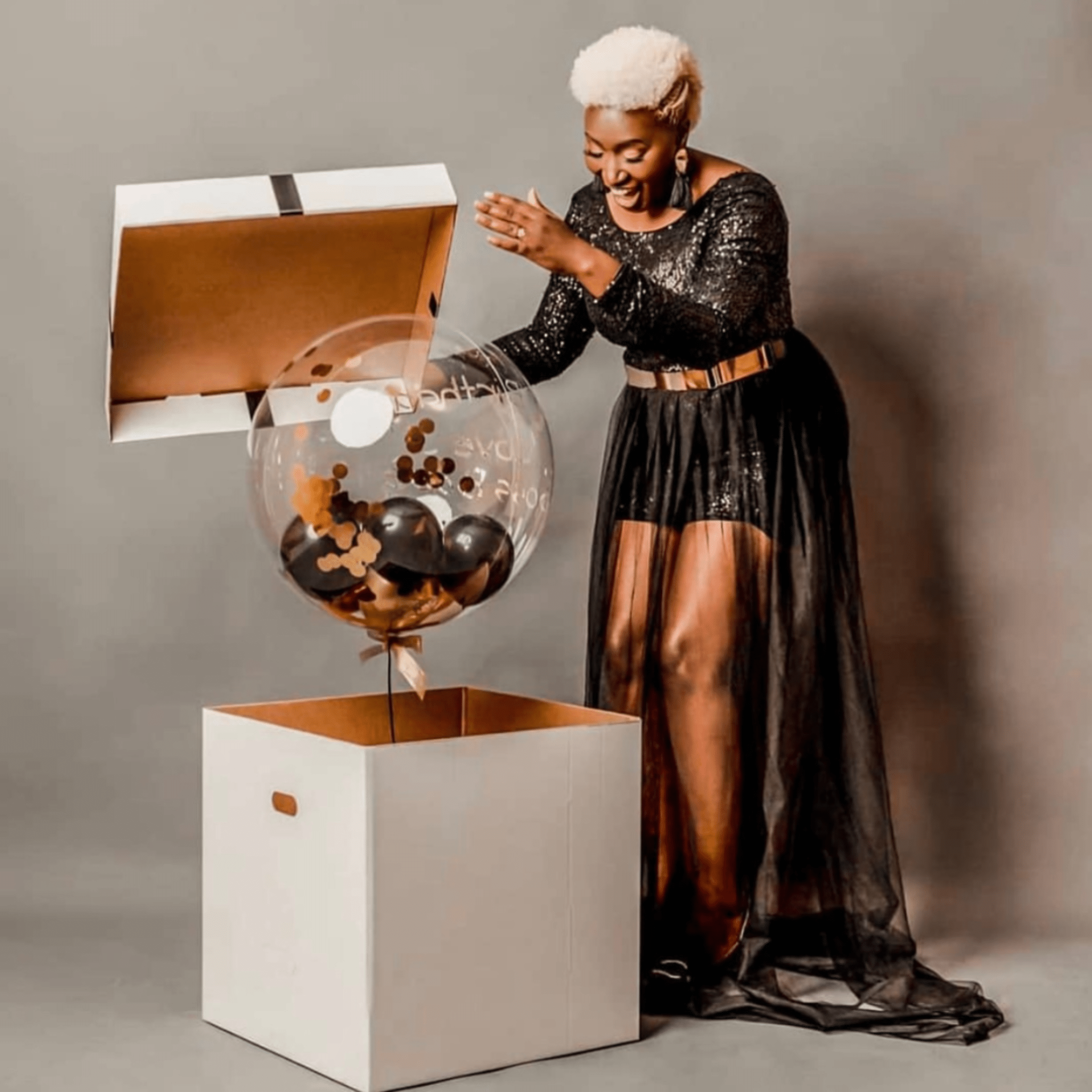 A stunning bubble balloon that floats for up to 48 hours. Delivered in a sleek white box and fully customizable in your preferred colors.