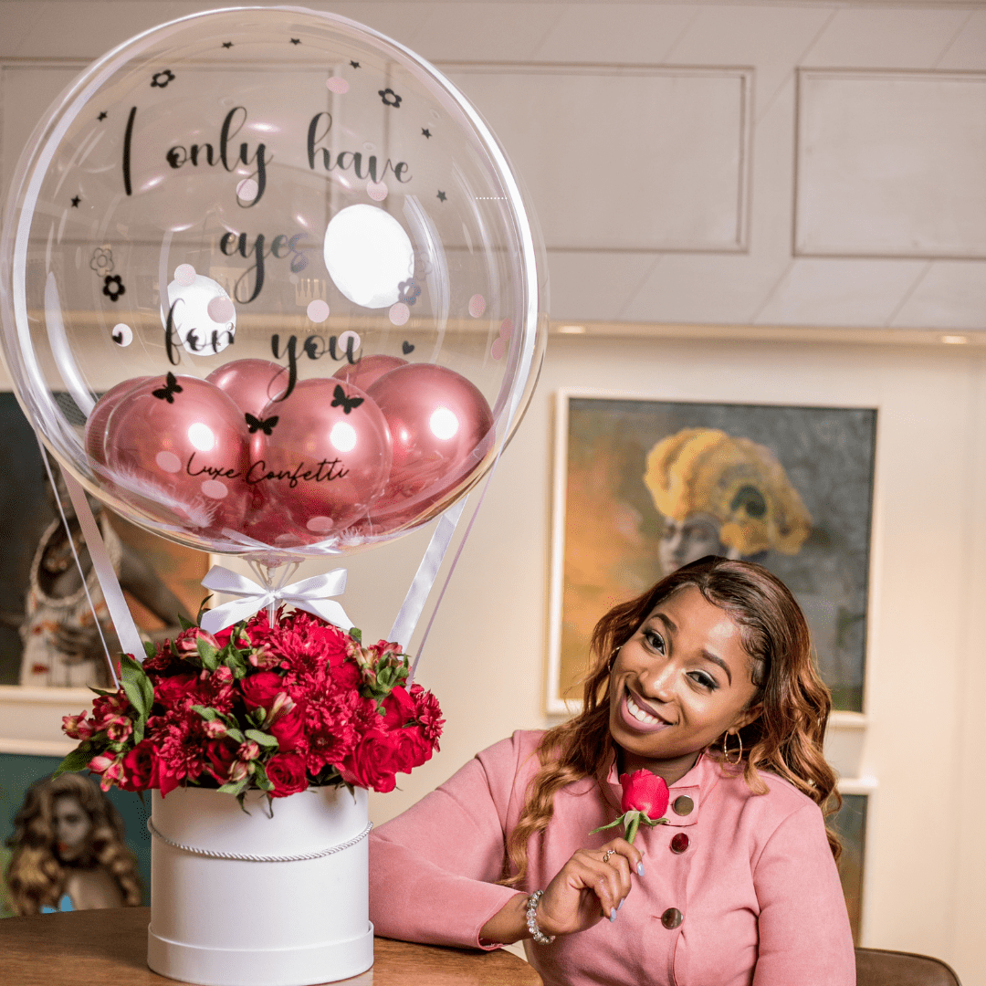 A timeless blend of elegance and charm, our Flower Bubbles are the perfect statement gift for any occasion. Along with our personalized bubble, the fresh flowers are carefully arranged to create a stunning, floating effect that radiates sophistication. Whether you’re celebrating love, friendship, or life’s milestones, this package is designed to impress.